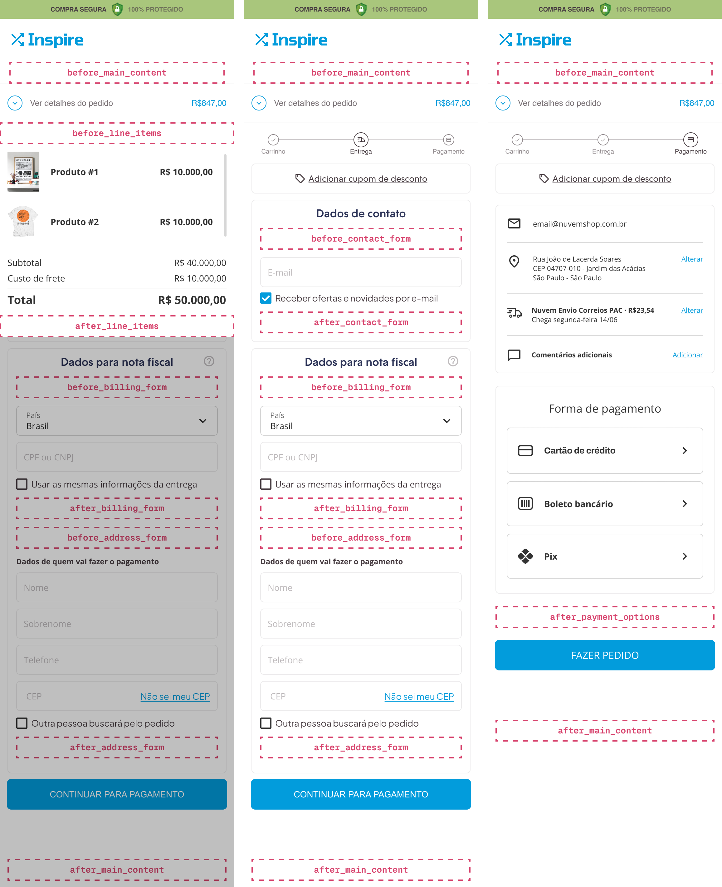 These are the slots that are available in checkout: